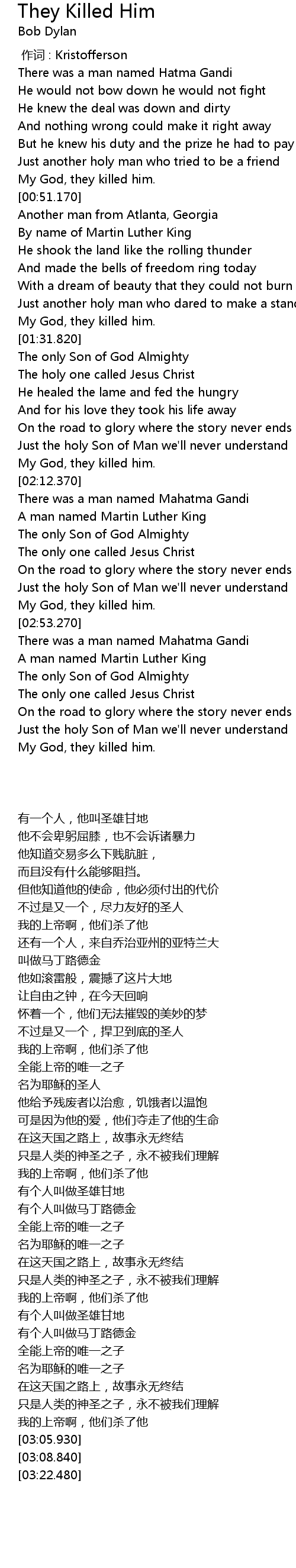| [03:22.480] | Just the holy Son of Man we' ll never understand |