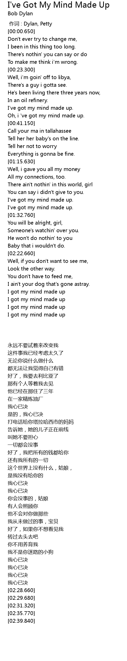 | [00:38.590] | Oh, i ' ve got my mind made up. |