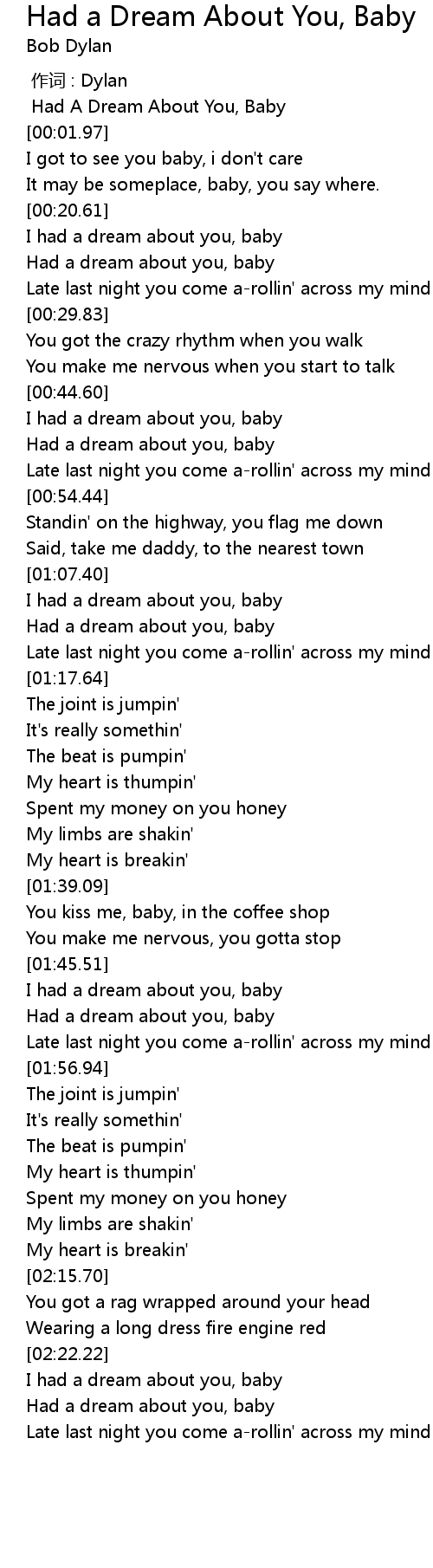 | [02:30.38] | Late last night you come a-rollin' across my mind |