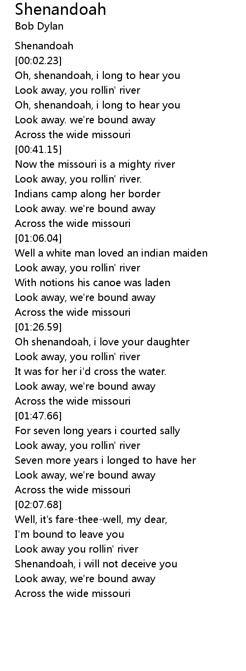 Oh shenandoah, i love your daughter |
