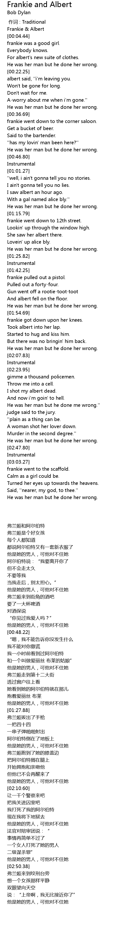 | [02:33.01] | He was her man but he done me wrong.'' |