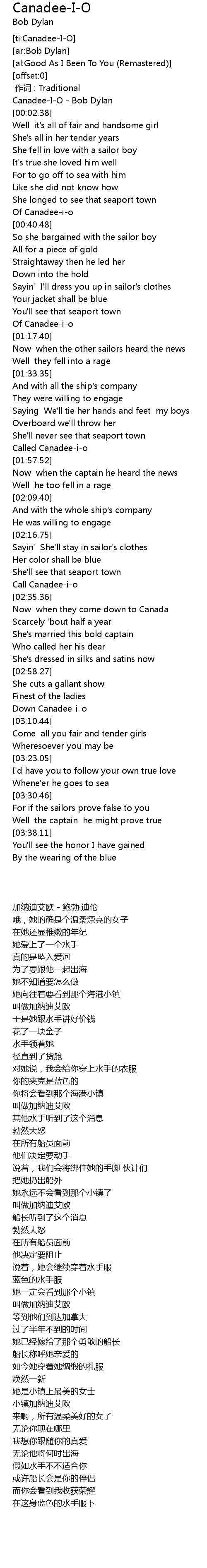 | [00:00.91] | Canadee-I-O - Bob Dylan |