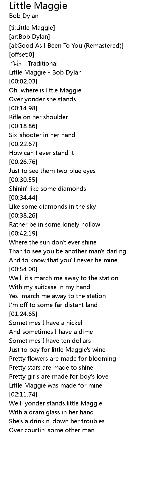 | [00:00.79] | Little Maggie - Bob Dylan |