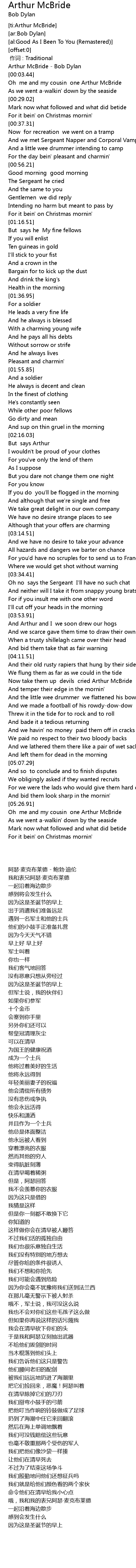 | [00:01.91] | Arthur McBride - Bob Dylan |
