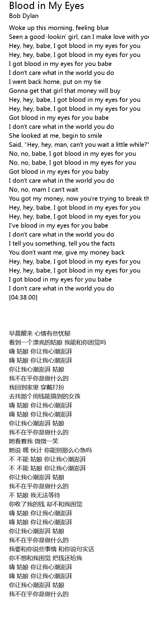 Got blood in my eyes for you babe |