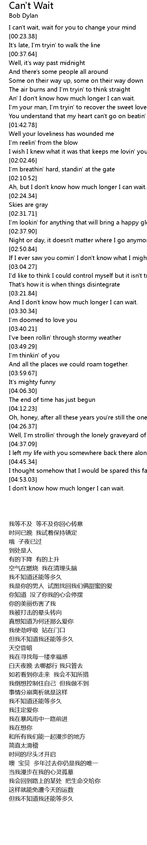 An' I don't know how much longer I can wait. |