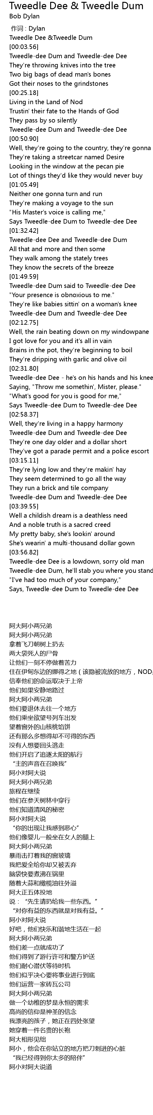 | [03:31.33] | Tweedledee Dum and Tweedledee Dee |