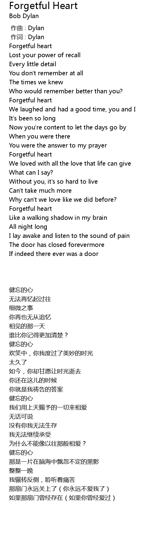 | [00:12.39] | Forgetful heart |