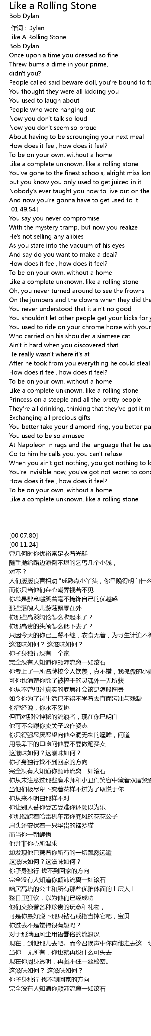 | [00:07.80] | Like A Rolling Stone |