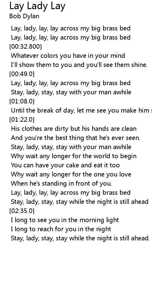 | [02:16.0] | Lay, lady, lay, lay across my big brass bed |