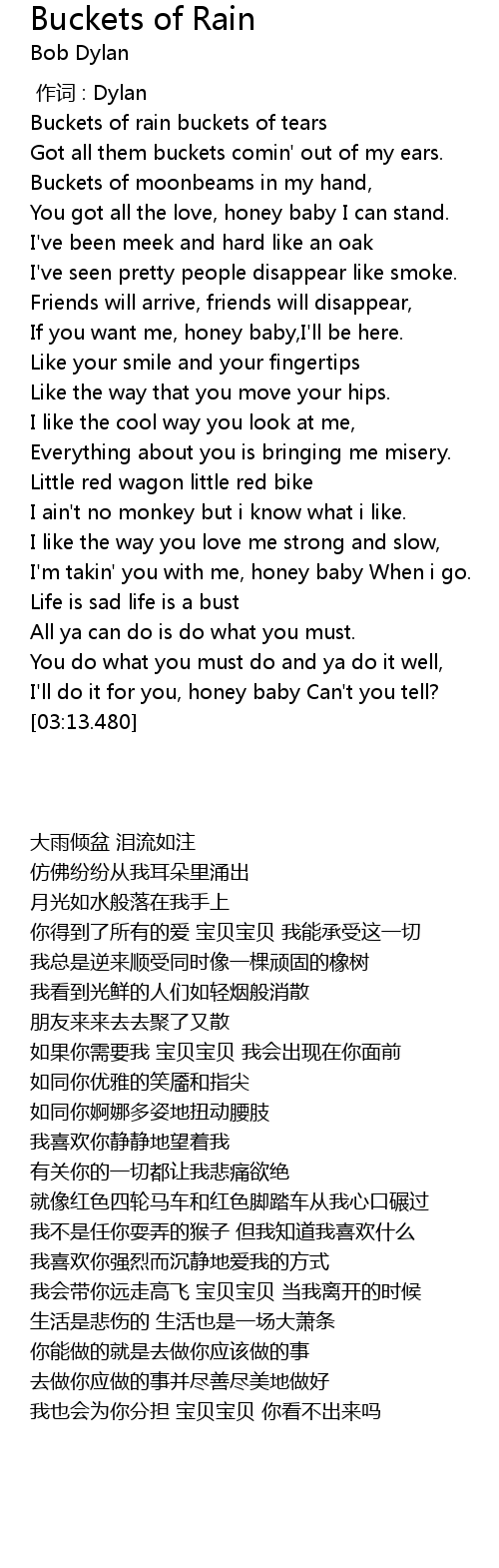 | [00:22.430] | Buckets of moonbeams in my hand, |