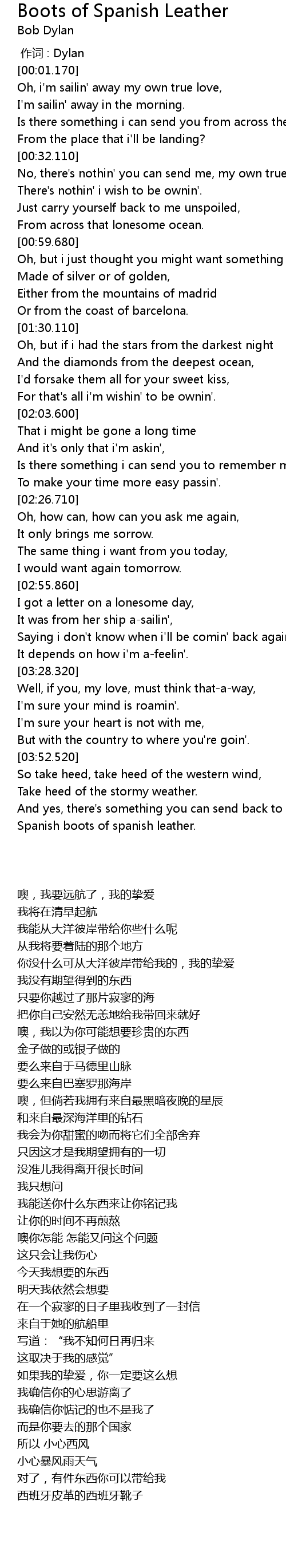 | [00:34.930] | No, there' s nothin' you can send me, my own true love, |