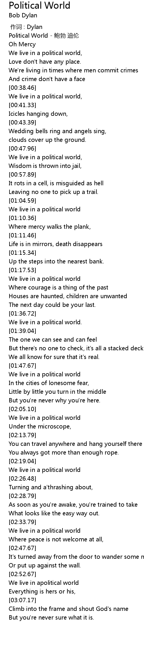 | [00:00.73] | Political World - 鲍勃 迪伦 |