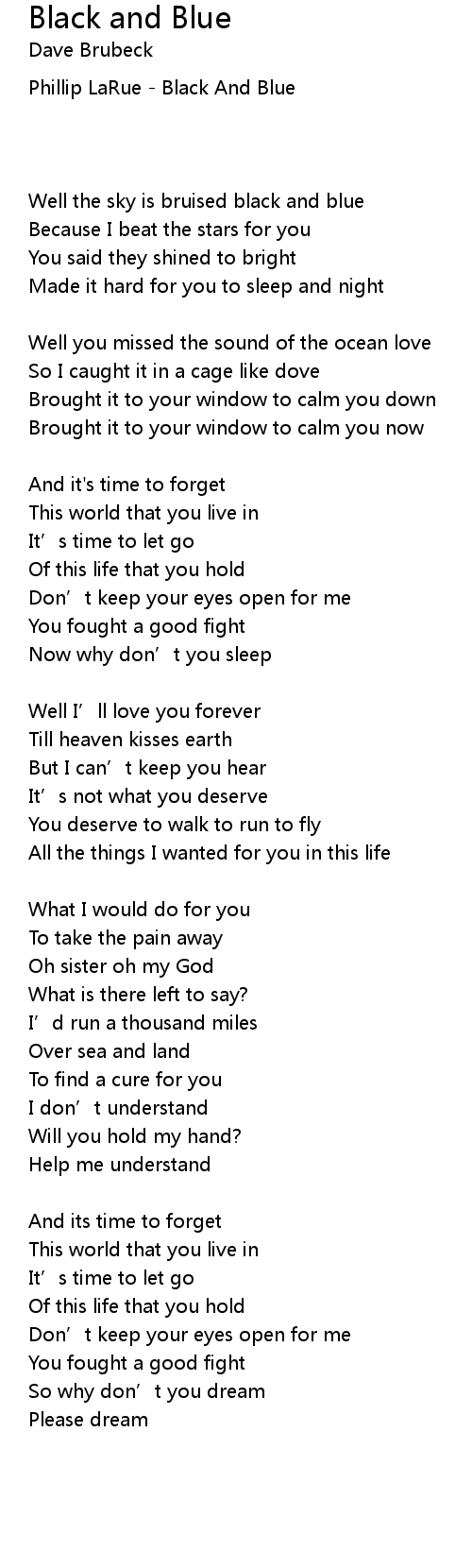 | Song | Black and Blue |