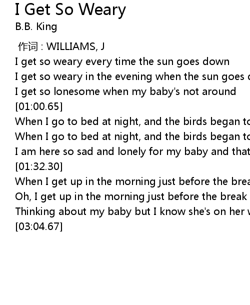 | [00:41.55] | I get so weary in the evening when the sun goes down |