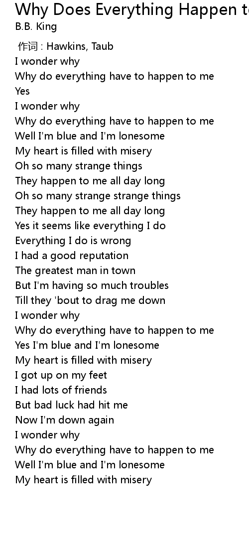 | [00:03.73] | Why do everything have to happen to me |