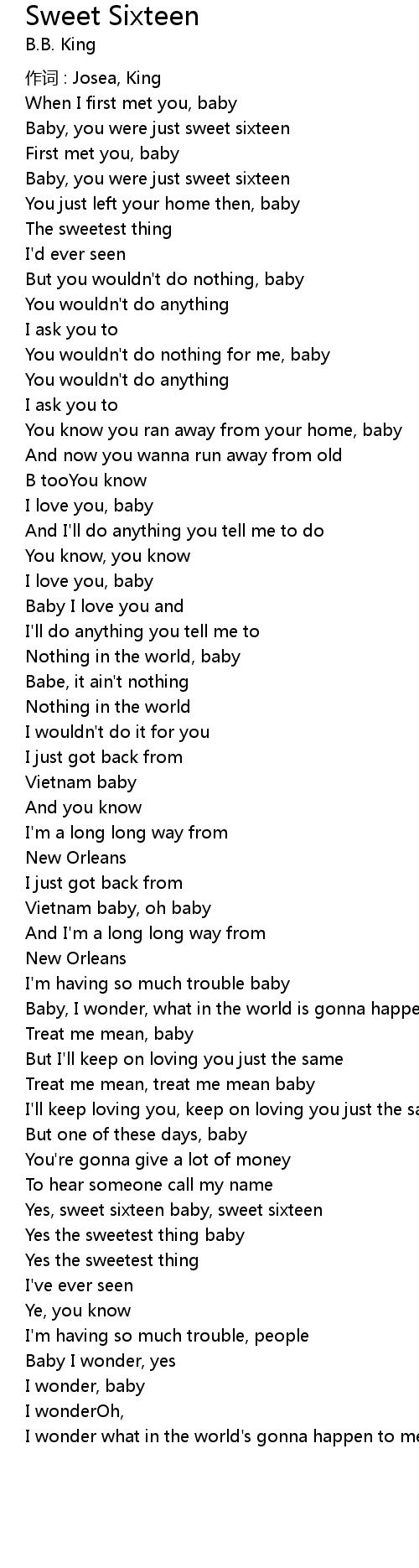 | Yes, sweet sixteen baby, sweet sixteen | |