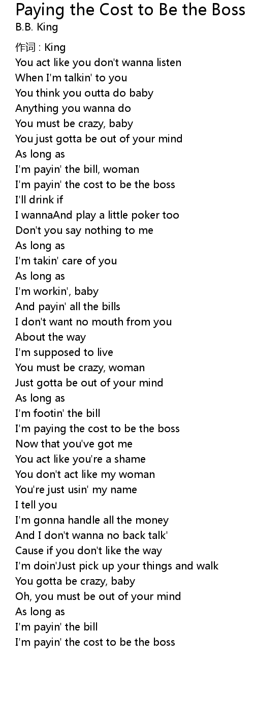 | I' m paying the cost to be the boss | |