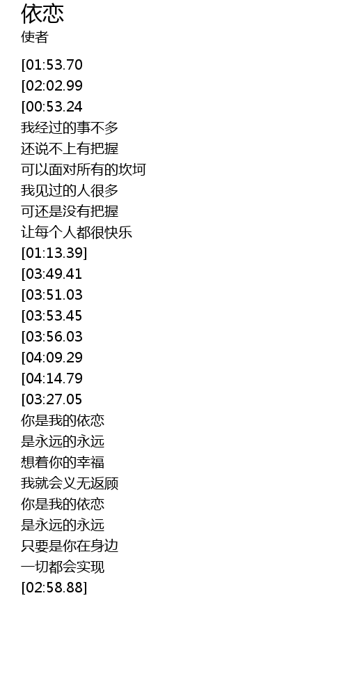 | [03:36.95][02:02.99][00:42.25] | Woo ni de shuang yan |
