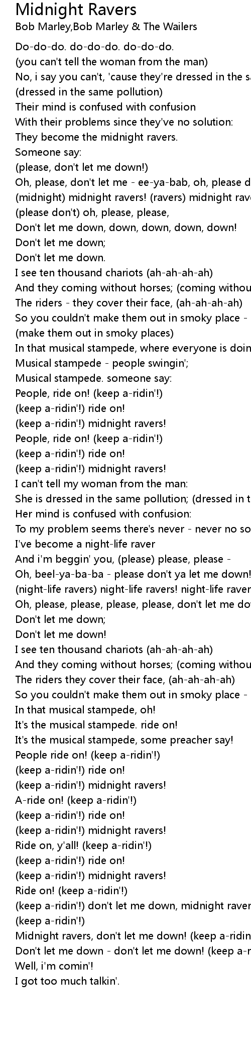 (keep a-ridin'!) don't let me down, midnight ravers! |