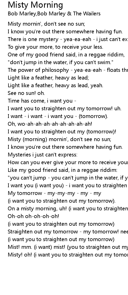 | On a misty morning, uh! i want you to straighten out my tomorrow. | |