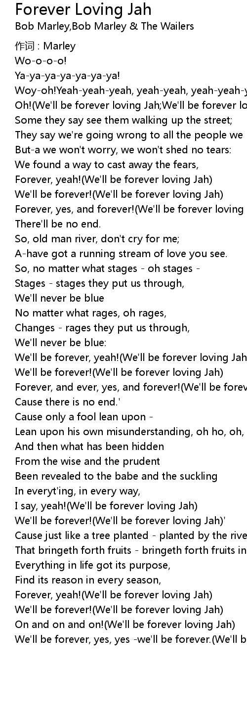| Forever, and ever, yes, and forever! We' ll be forever loving Jah ' | |