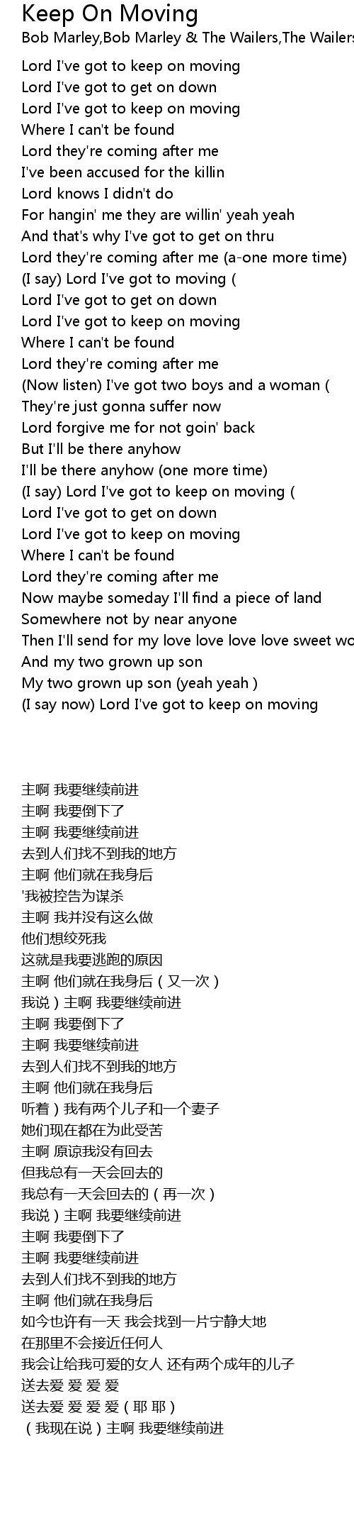 | [02:58.47] | (I say now) Lord I've got to keep on moving |