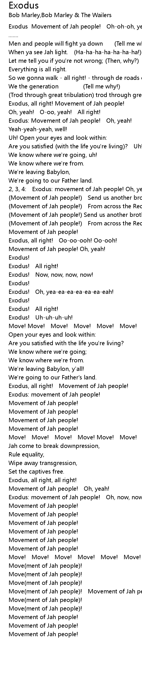 | Exodus Movement of Jah people! Oh-oh-oh, yea-eah! | |