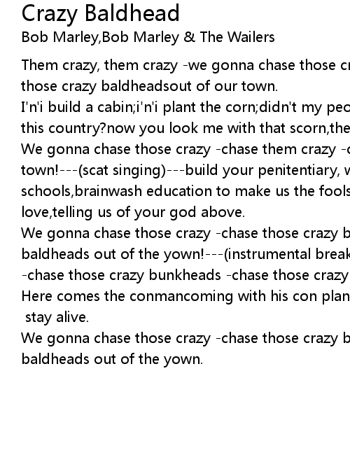 Them crazy, them crazy -we gonna chase those crazybaldheads out of town;chase those crazy baldheadsout of our town.