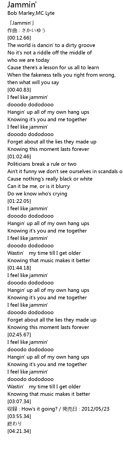 | [03:50.34] | shōu lù How' s it going? fā mài rì 2012 05 23 |