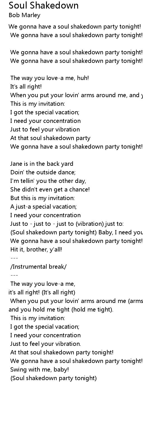 (Soul shakedown party tonight) Baby, I need you tonight! |