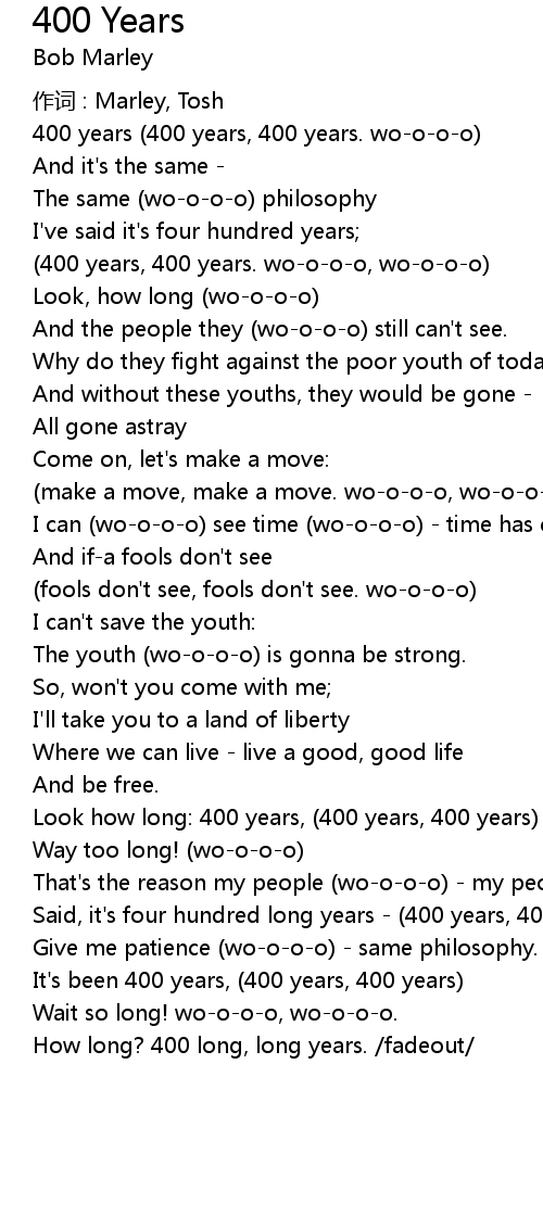 | (400 years, 400 years. wo-o-o-o, wo-o-o-o) | |