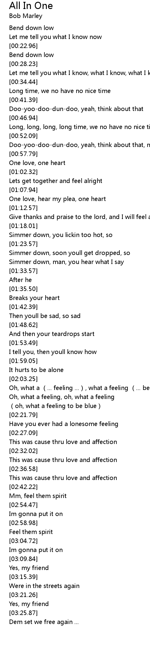 | [00:58.78] | One love, one heart |