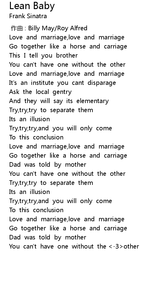 | [02:09.99] | Love and marriage, love and marriage |