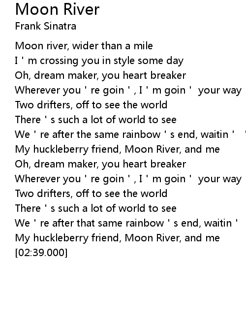 | [02:24.000] | My huckleberry friend, Moon River, and me |