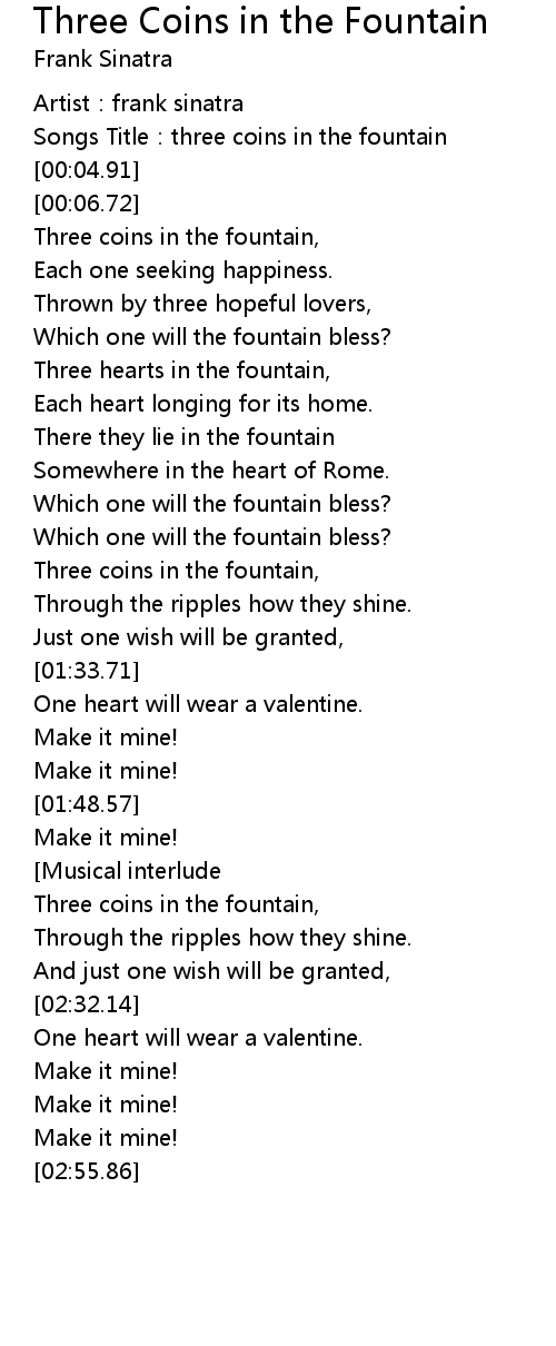 | [00:02.48] | Songs Title: three coins in the fountain |