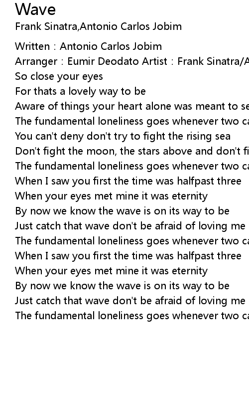 | Arranger: Eumir Deodato Artist: Frank Sinatra Antonio Carlos Jobim | |