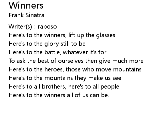 | Here's to the winners, lift up the glasses | |