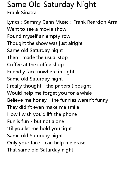 | Same old Saturday night | |