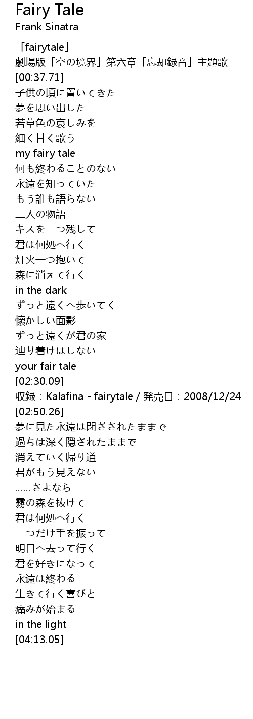 | [02:33.09] | 収録:Kalafina - fairytale/発売日:2008/12/24 |