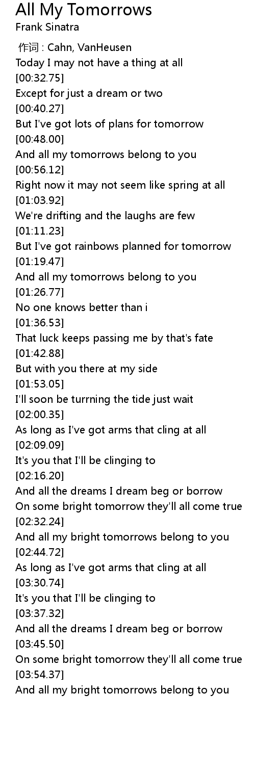 | [02:35.11] | And all my bright tomorrows belong to you |