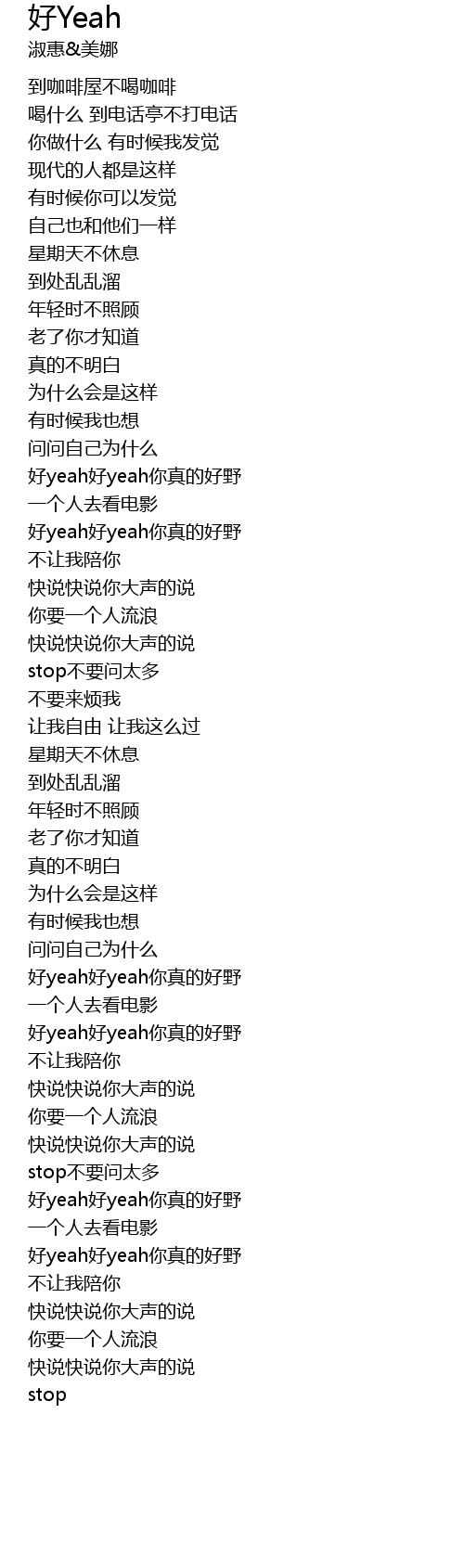 | hǎo yeah hǎo yeah nǐ zhēn de hǎo yě | |