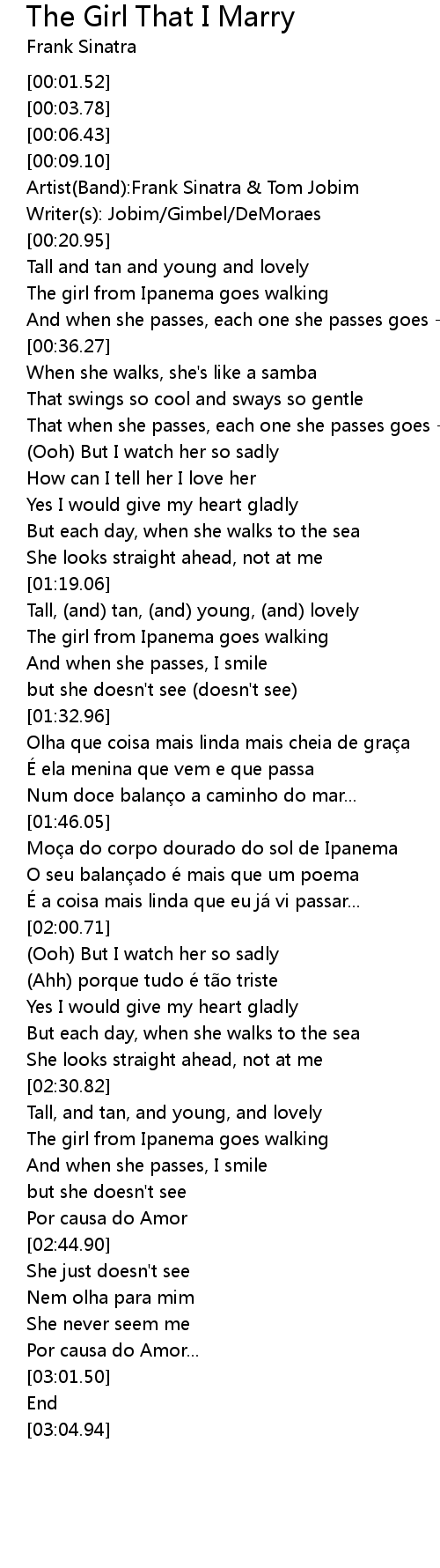 | [00:10.86] | Artist Band: Frank Sinatra Tom Jobim |