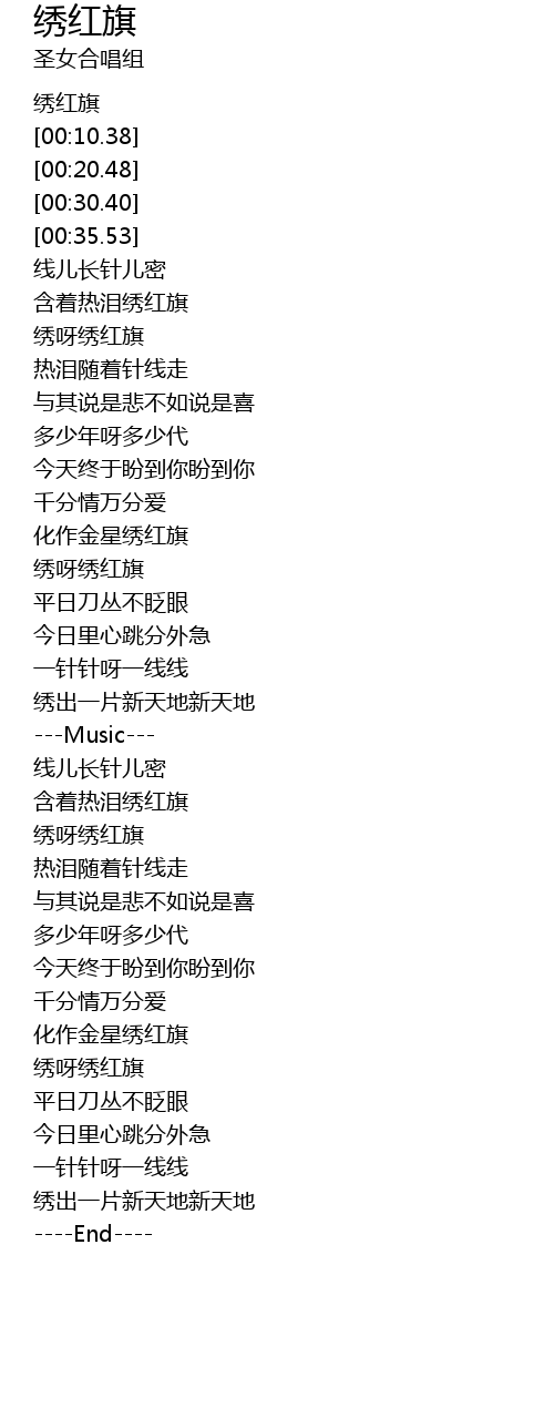 | [04:10.47] | 绣呀绣红旗 |
