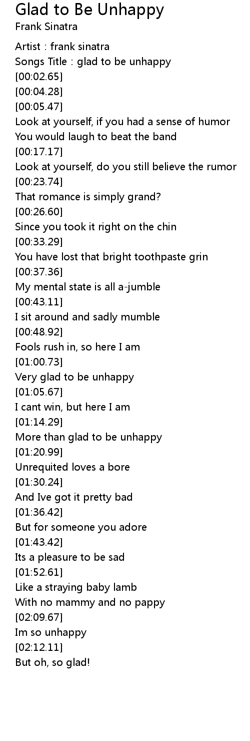 | [00:01.16] | Songs Title: glad to be unhappy |