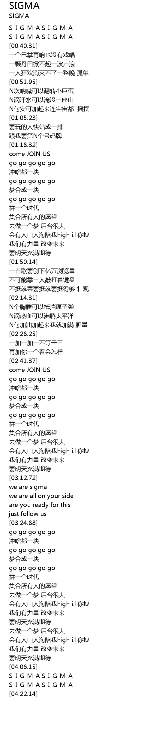 | [04:15.63] | S-I-G-M-A S-I-G-M-A |