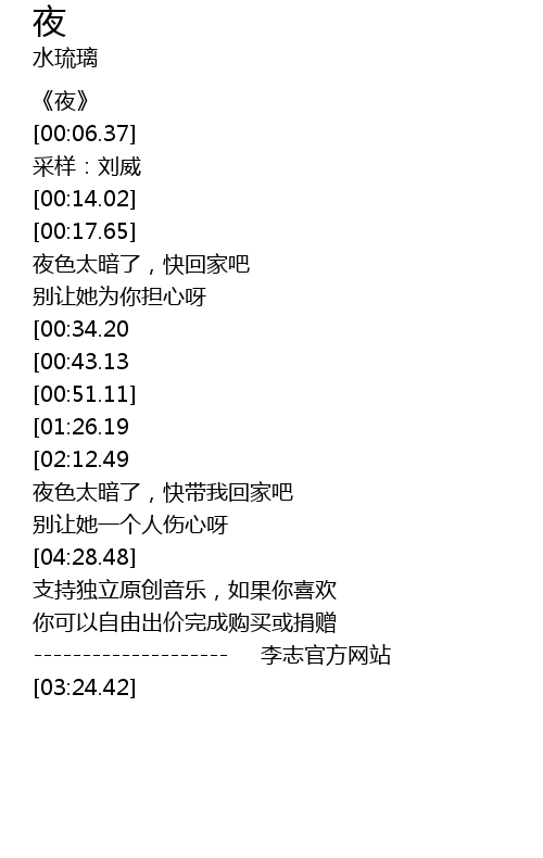 | [00:18.00] | 夜色太暗了,快回家吧 |