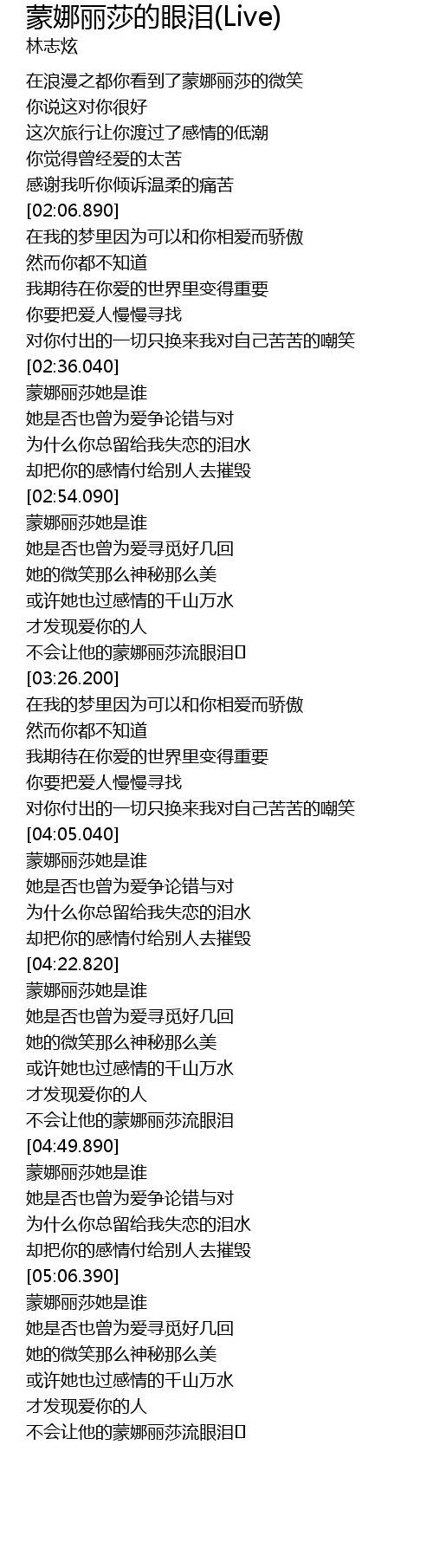 | [05:07.960] | 蒙娜丽莎她是谁 |