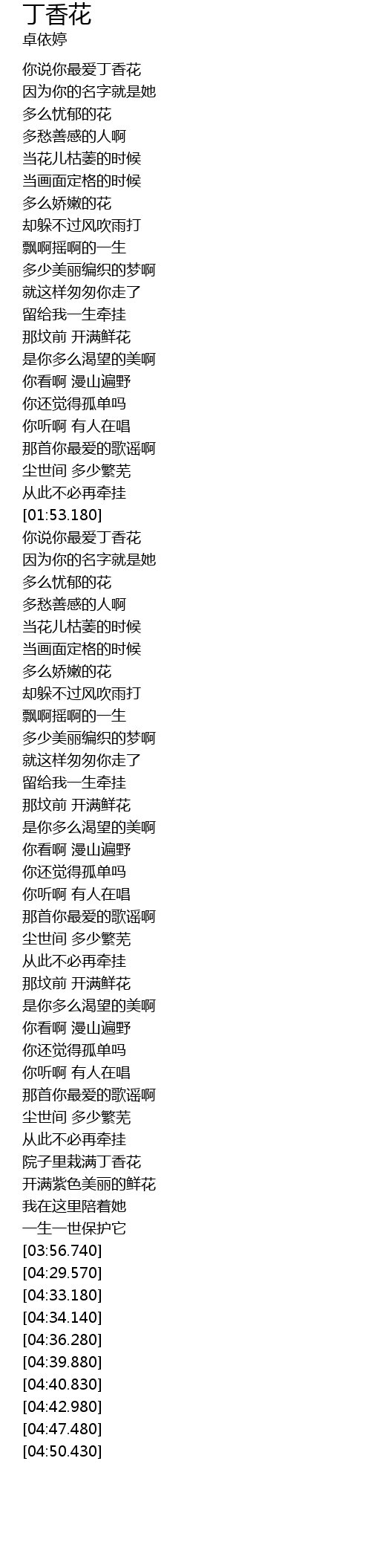 | [02:02.390] | nǐ shuō nǐ zuì ài dīng xiāng huā |