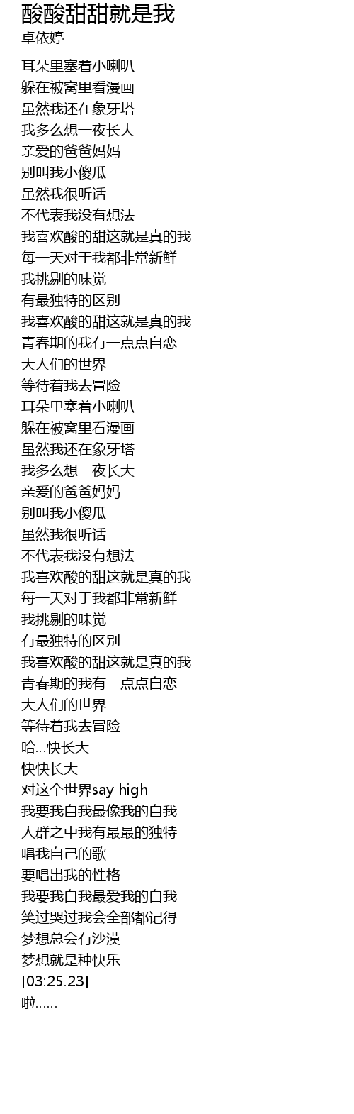 | [02:23.13] | 我喜欢酸的甜这就是真的我 |